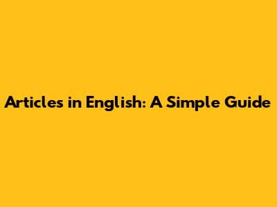 Articles In English: A Simple Guide