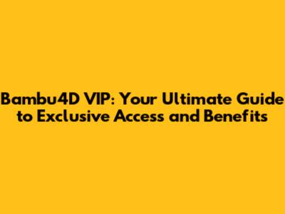 Bambu4D VIP: Ultimate Guide, Benefits, And Exclusive Access