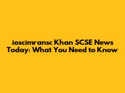 Breaking News: Ioscimransc Khan SCSE Updates