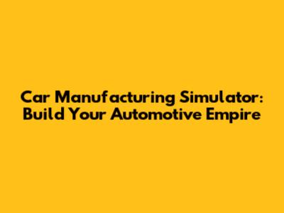 Car Manufacturing Simulator: Build Your Automotive Empire