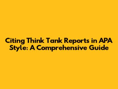 Citing Think Tank Reports In APA Style: A Comprehensive Guide