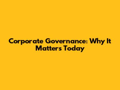 Corporate Governance: Why It Matters Today