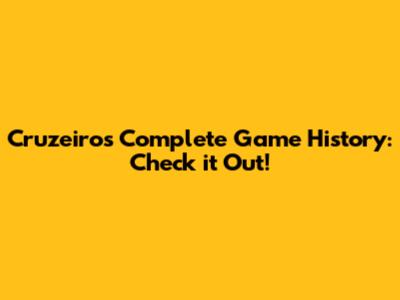 Cruzeiro's Complete Game History: Check It Out!