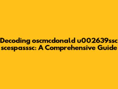 Decoding Oscmcdonald U002639ssc Scespasssc: A Comprehensive Guide