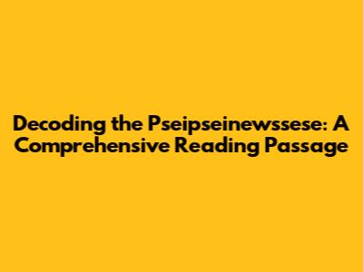 Decoding The Pseipseinewssese: A Comprehensive Reading Passage
