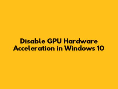 Disable GPU Hardware Acceleration In Windows 10