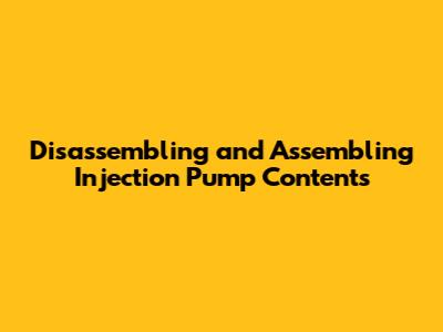 Disassembling And Assembling Injection Pump Contents