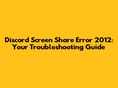 Discord Screen Share Error 2012: Quick Fixes & Solutions