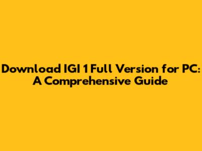 Download IGI 1 Full Version For PC: A Comprehensive Guide
