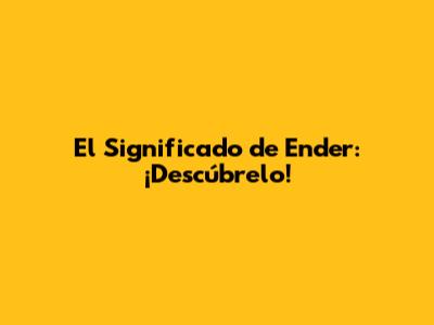 El Significado De Ender: ¡Descúbrelo!