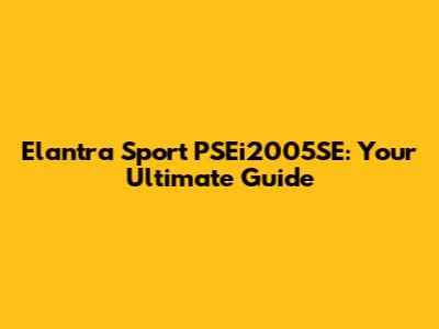 Elantra Sport PSEi2005SE: Your Ultimate Guide