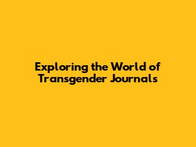 Exploring The World Of Transgender Journals