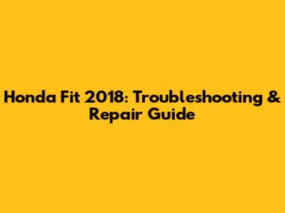 Honda Fit 2018: Troubleshooting & Repair Guide