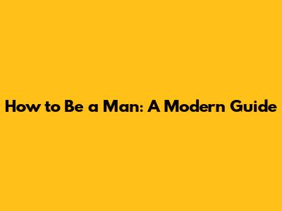 How To Be A Man: A Modern Guide