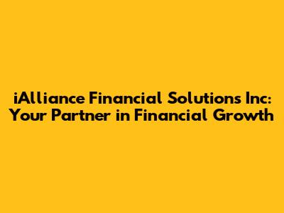 Hey everyone! Are you looking for a helping hand to navigate the sometimes-confusing world of finance? Well, you've come to the right place! Today, we're diving deep into iAlliance Financial Solutions Inc, and trust me, it's a name you'll want to remember. They're all about empowering you to take control of your financial future, and that's something we can all get behind, right?
