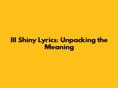 III Shiny Lyrics: Unpacking The Meaning