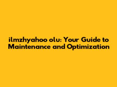 Ilmzhyahoo Olu: Your Guide To Maintenance And Optimization
