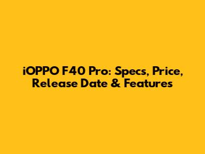 IOPPO F40 Pro: Specs, Price, Release Date & Features