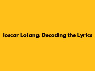 Ioscar Lolang: Decoding The Lyrics