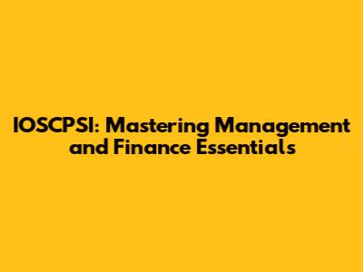 IOSCPSI: Mastering Management And Finance Essentials