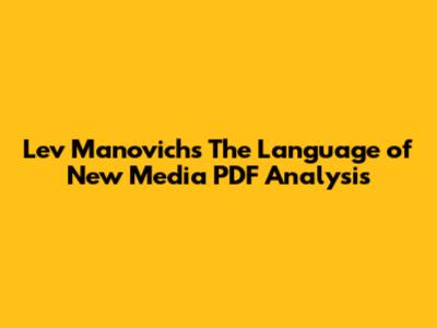 Lev Manovich's The Language Of New Media PDF Analysis