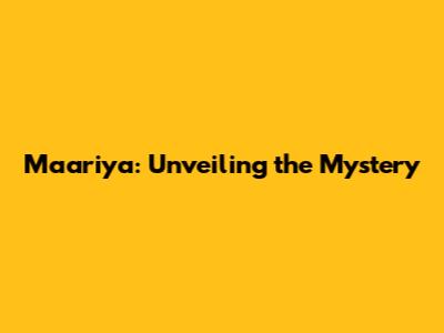 Maariya: Unveiling The Mystery
