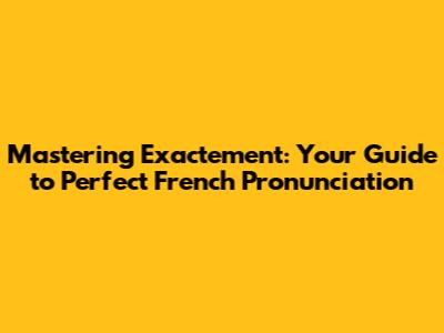 Mastering 'Exactement': Your Guide To Perfect French Pronunciation