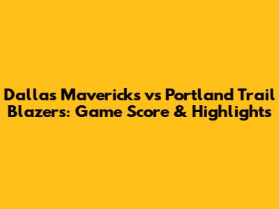 Mavericks Vs. Blazers: Game Score & Highlights