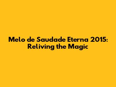 Melo De Saudade Eterna 2015: A Nostalgic Journey