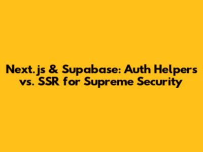 Next.js & Supabase: Auth Helpers Vs. SSR For Supreme Security
