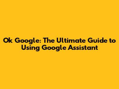 Ok Google: The Ultimate Guide To Using Google Assistant