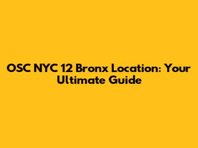 OSC NYC 12 Bronx: Everything You Need To Know