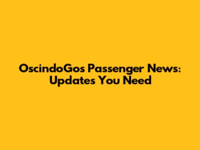 OscindoGos Passenger News: Updates You Need