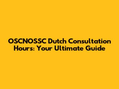 OSCNOSSC Dutch Consultation Hours: Your Guide