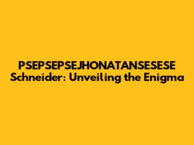 PSEPSEPSEJHONATANSESESE Schneider: A Deep Dive