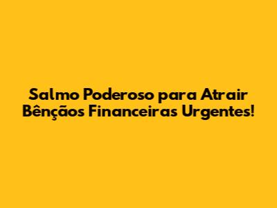 Salmo Poderoso Para Atrair Bênçãos Financeiras Urgentes!