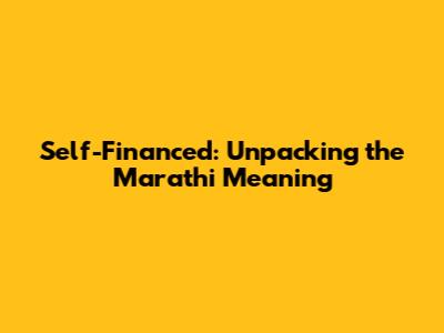 Self-Financed: Understanding The Marathi Meaning
