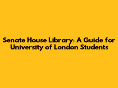Senate House Library: A Guide For University Of London Students