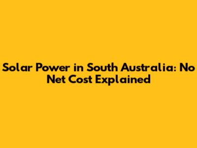 Solar Power In South Australia: No Net Cost Explained