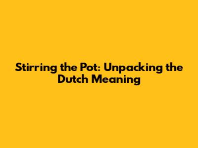 Stirring The Pot: Dutch Meanings & Examples
