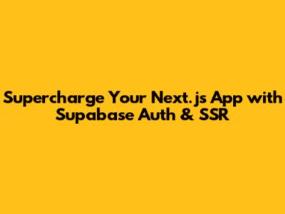 Supercharge Your Next.js App With Supabase Auth & SSR