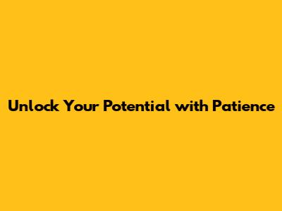 Unlock Your Potential With Patience