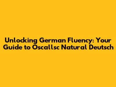 Unlocking German Fluency: Your Guide To Oscallsc Natural Deutsch
