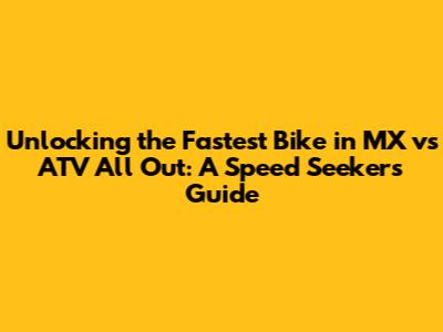 Hey speed demons and dirt track dominators! Ever wondered which bike reigns supreme in the adrenaline-pumping world of MX vs ATV All Out? We're diving headfirst into the quest for the fastest bike in this awesome game. Forget slow starts and dusty finishes – we're talking about pure, unadulterated velocity. Get ready to leave your rivals eating your dust as we explore the key factors that contribute to top speed, handling, and overall performance. Whether you're a seasoned veteran or a fresh-faced rookie, this guide is your ticket to becoming the undisputed speed king. So, buckle up, rev those engines, and let's find out which machine will have you crossing the finish line first! This comprehensive guide will break down everything you need to know about selecting the fastest bike in MX vs ATV All Out, from understanding the game's mechanics to evaluating different bike models.