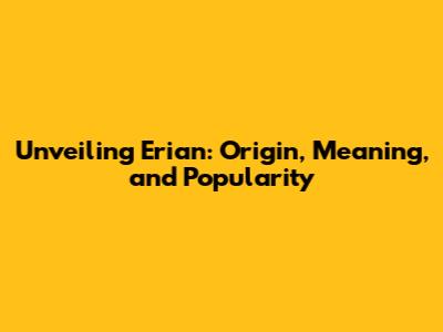 Unveiling Erian: Origin, Meaning, And Popularity