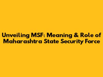 Hey there, folks! Ever wondered what MSF full form police in Marathi actually means? Well, you're in the right place! We're diving deep into the Maharashtra State Security Force (MSF), exploring its meaning, functions, and significance within the state's security apparatus. Buckle up, because we're about to embark on a journey that unravels the mysteries of this crucial force. This article provides a comprehensive understanding of the MSF, ensuring you're well-informed about its role in maintaining peace and order in Maharashtra. So, let's get started, shall we?