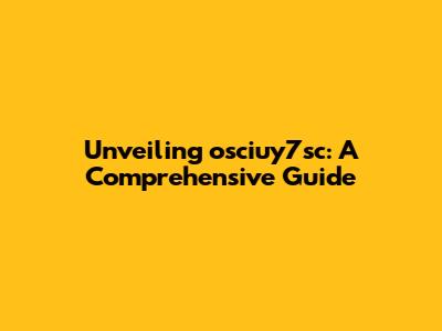 Unveiling Osciuy7sc: A Comprehensive Guide