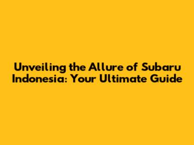 Unveiling The Allure Of Subaru Indonesia: Your Ultimate Guide