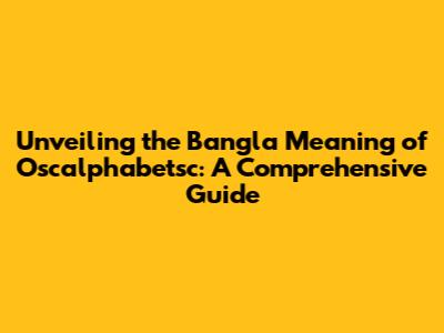 Unveiling The Bangla Meaning Of Oscalphabetsc: A Comprehensive Guide