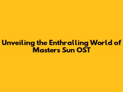 Unveiling The Enthralling World Of Master's Sun OST